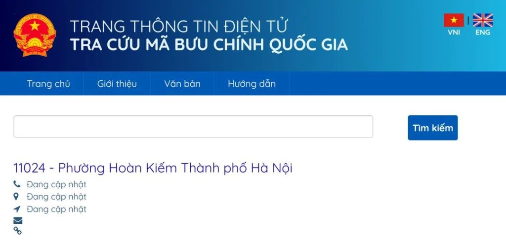 - Hệ thống sẽ hiển thị mã bưu chính chính xác nhất cho khu vực đó.